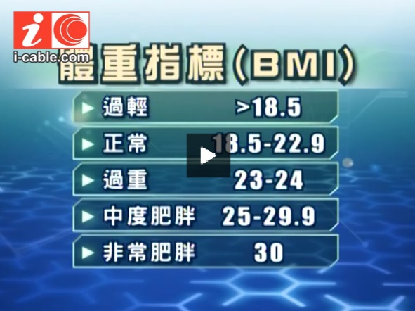 想有效的控制體重,可以用身高體重指標 (BMI) 先計一計,看看自己的體重是否標準。只要將自己的體重除以身高的二次方,成年的亞洲人,無論男或女,如果 BMI 在 18.5 至 22.9 之間就代表正常,超過 23 就是過重邊沿,超過 25 和 30 就是中度肥胖和嚴重肥胖。